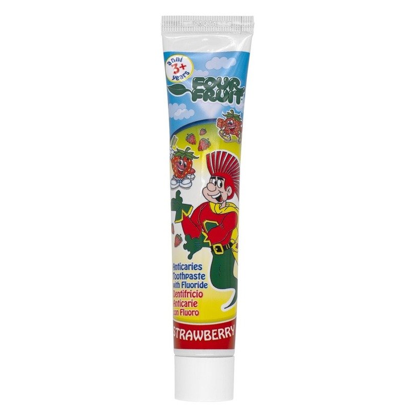 معجون لذيذ بنكهة الفراولة يجعل التفريش ممتعًا للأطفال.